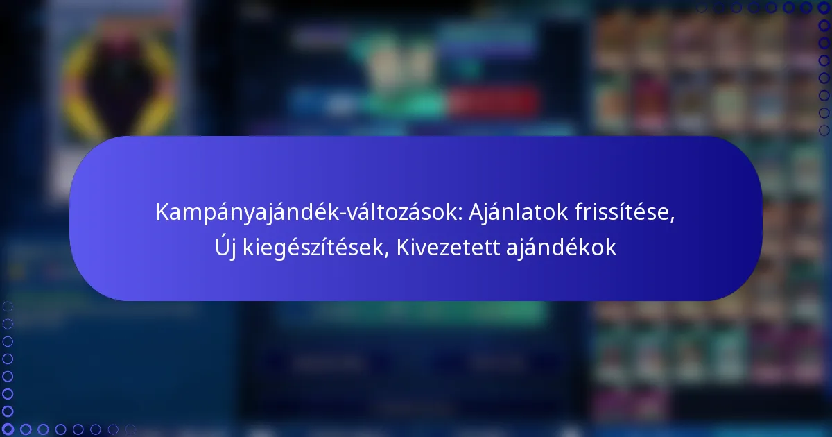 A Yu-Gi-Oh! Duel Links kampányajándékainak legutóbbi frissítései új kiegészítéseket, a meglévő ajánlatok módosításait és a fokozatosan kivont ajándékokat tartalmazzák, amelyek már nem lesznek elérhetők. Ezek a változások a játékosok élményének és elköteleződésének fokozására irányulnak, értékesebb jutalmak biztosításával és az ajándékok kiválasztási folyamatának egyszerűsítésével.